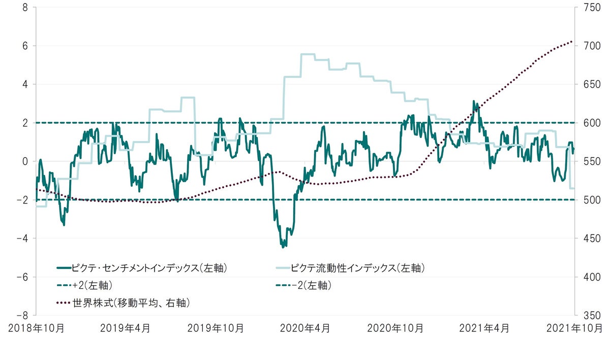 ※ピクテ流動性・センチメントインデックスは流動性供給量や世界株式の予想PERなどを使用し、ピクテ・アセット・マネジメントが独自に算出