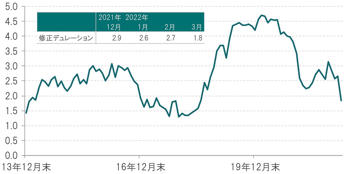 月次、期間:2013年12月末~2022年3月末、単位:年