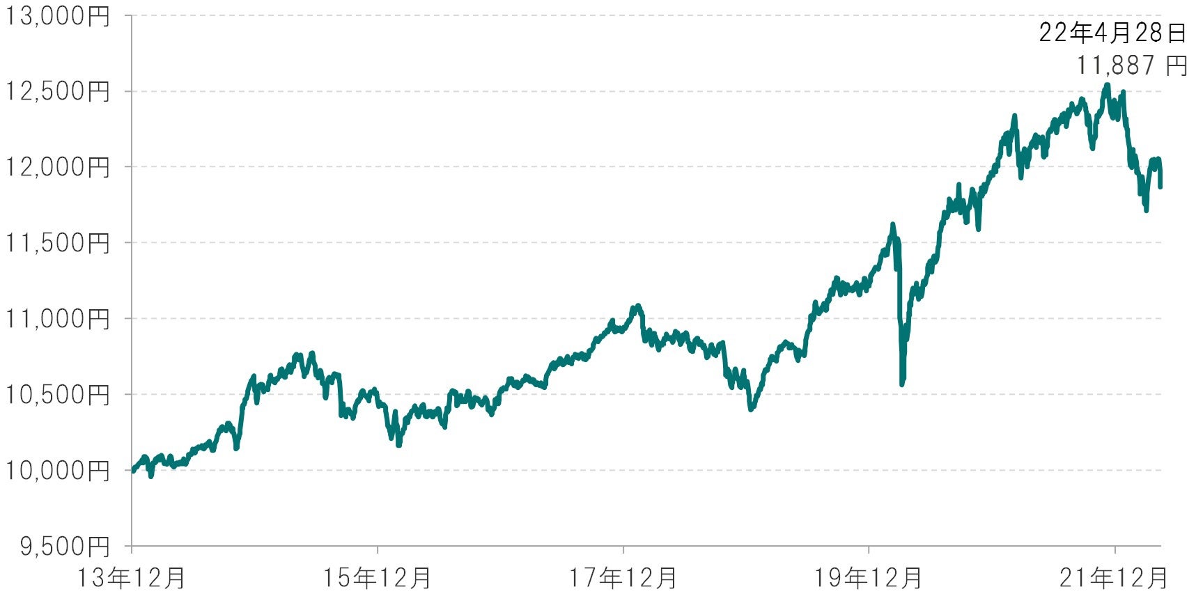 期間:設定日(2013年12月12日)~2022年4月末、単位:円