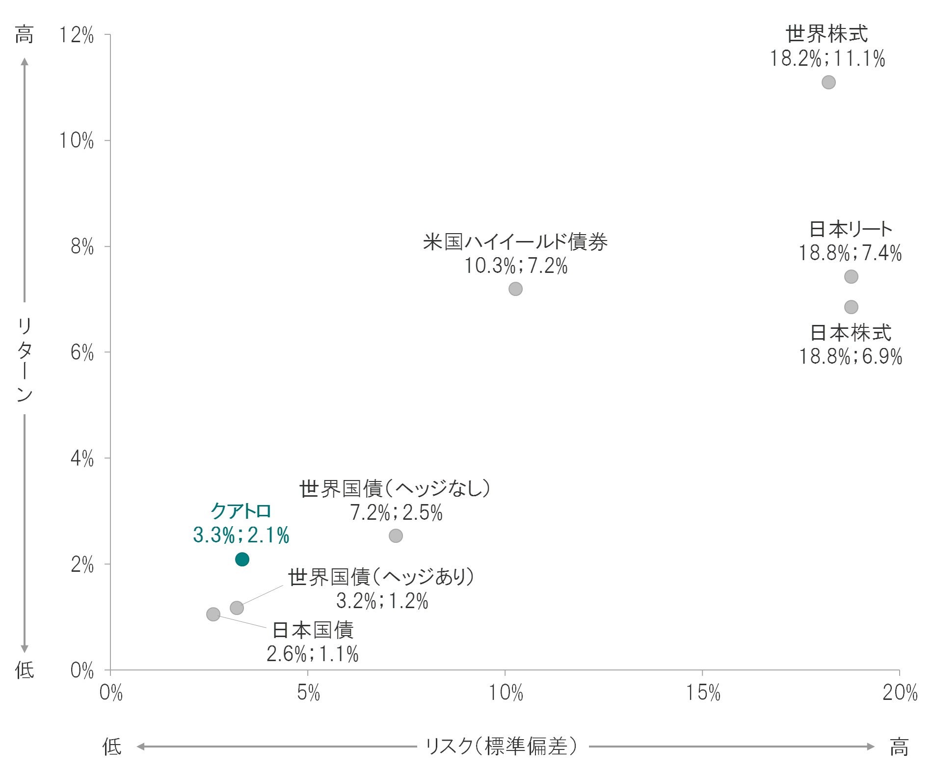 クアトロおよび主要な資産のリスク・リターン比較