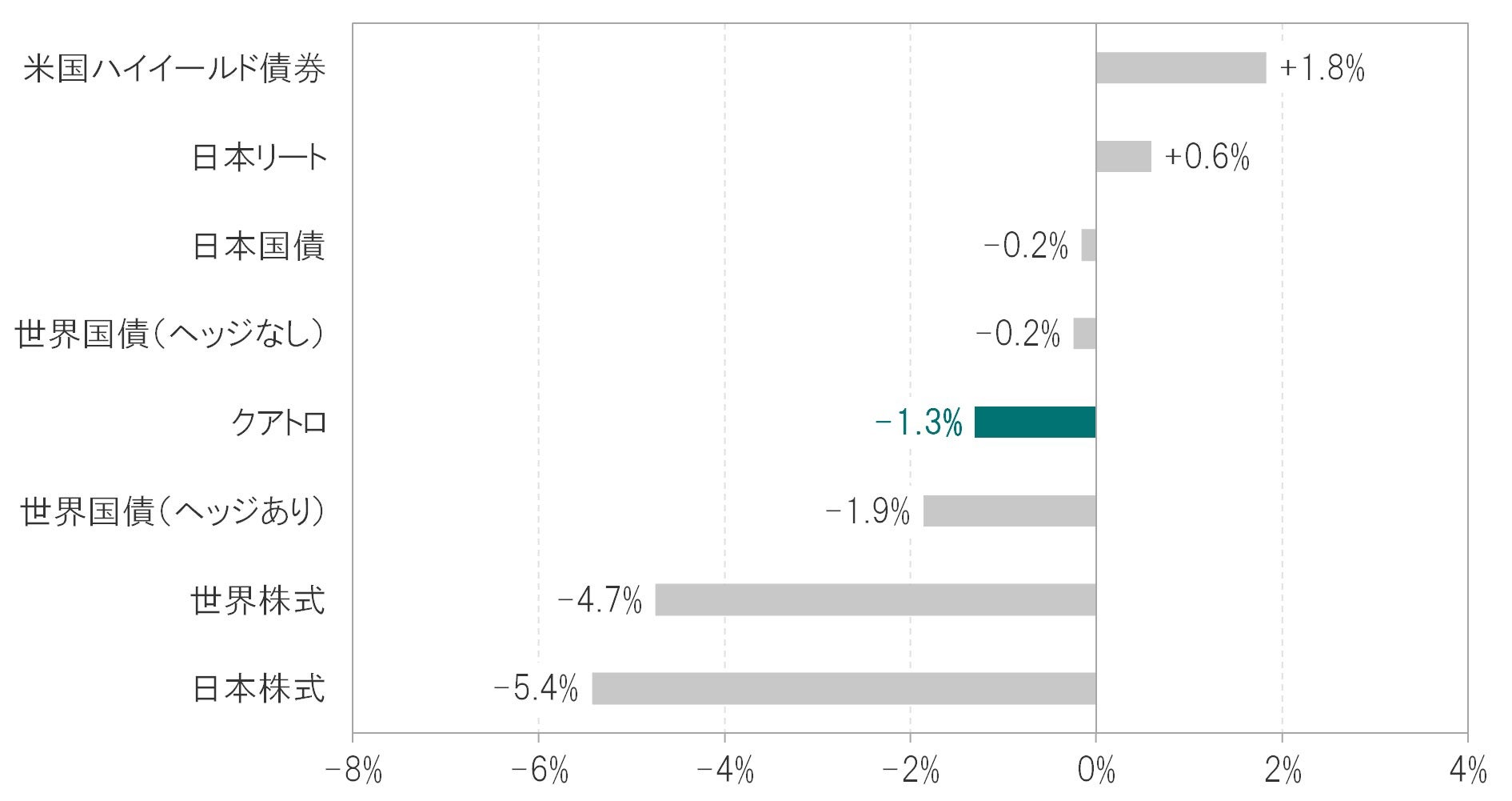 2022年4月は、オルタナティブがプラス寄与となった一方、株式、債券、先物・オプションがマイナス寄与となりました。