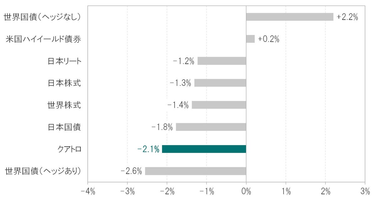 2022年6月は、オルタナティブがプラス寄与となった一方、株式、債券、先物・オプションがマイナス寄与となりました。