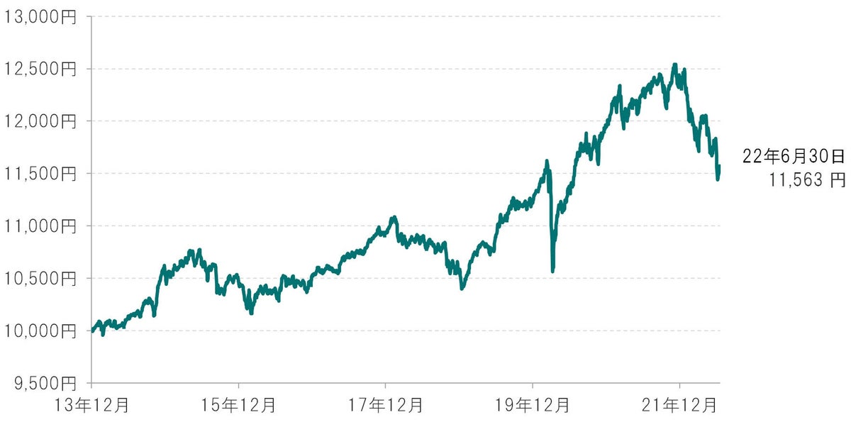 期間:設定日(2013年12月12日)~2022年6月末、単位:円