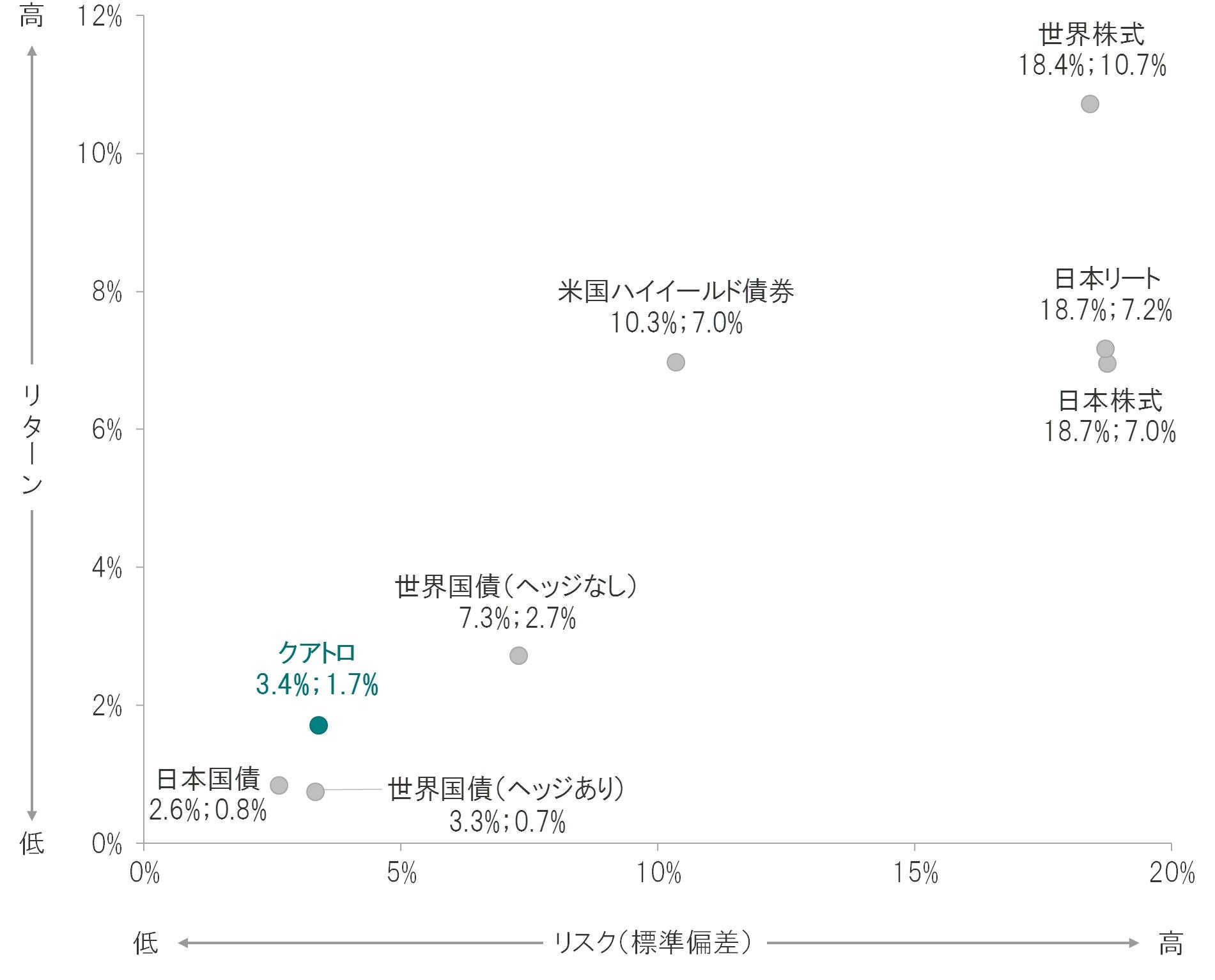 クアトロおよび主要な資産のリスク・リターン比較