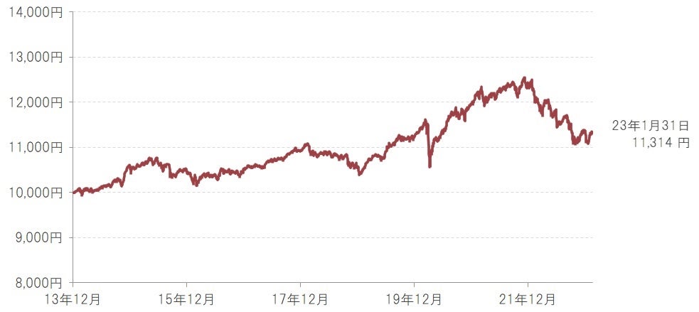 期間:設定日(2013年12月12日)~2023年1月末、単位:円