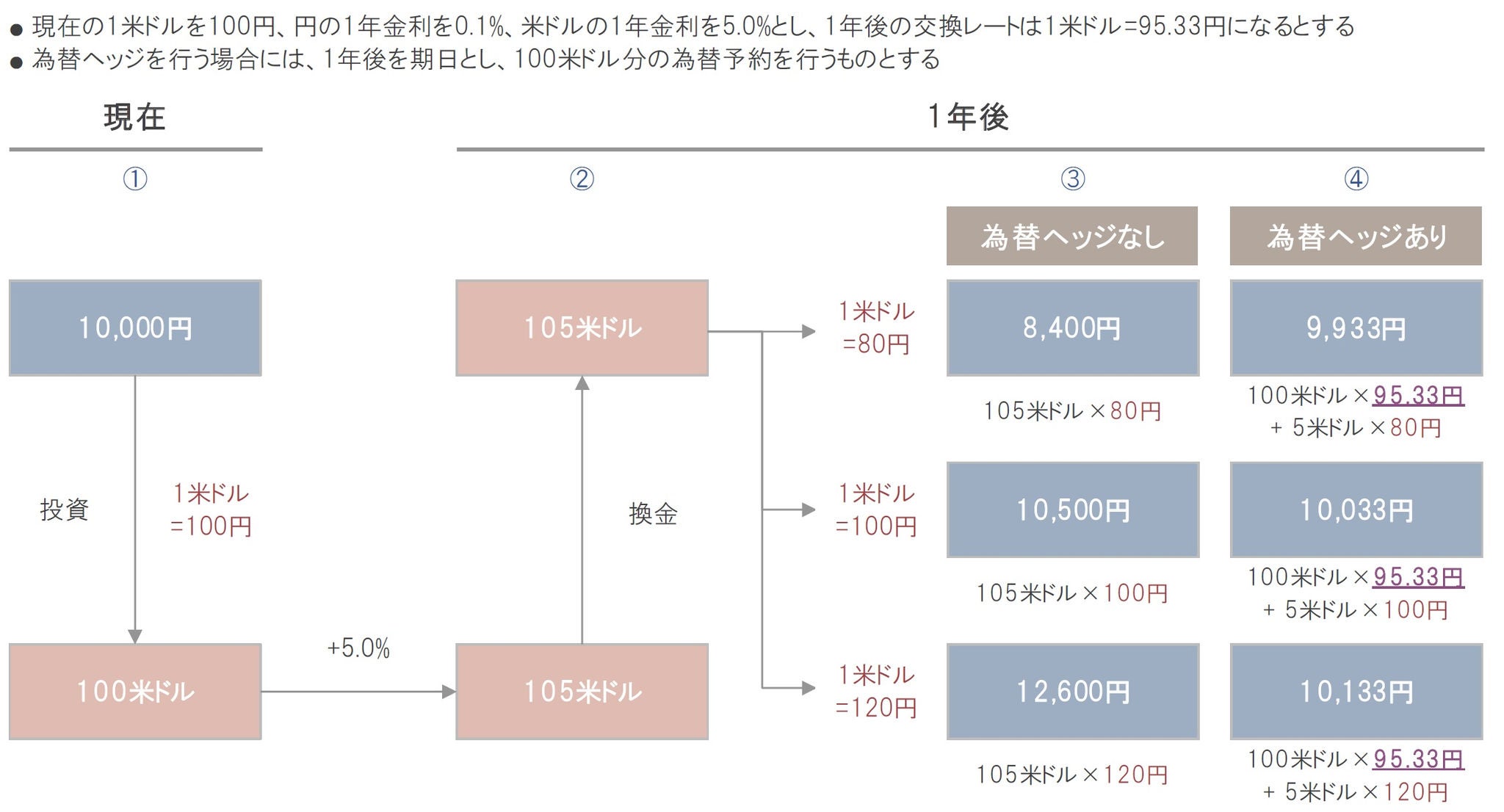 ここでは、図表3の数値例を用いて為替ヘッジ効果を確認します。