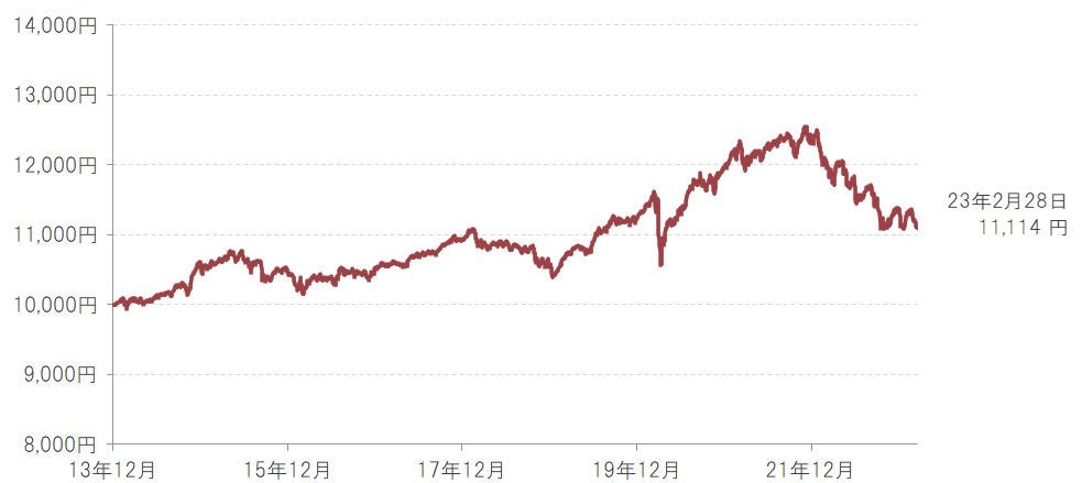 期間:設定日(2013年12月12日)~2023年2月末、単位:円
