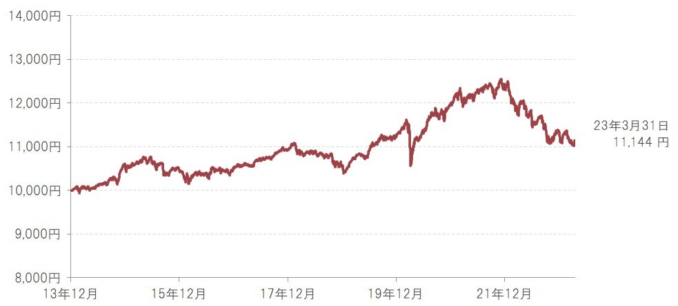 期間:設定日(2013年12月12日)~2023年3月末、単位:円