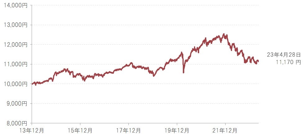 期間:設定日(2013年12月12日)~2023年4月末、単位:円