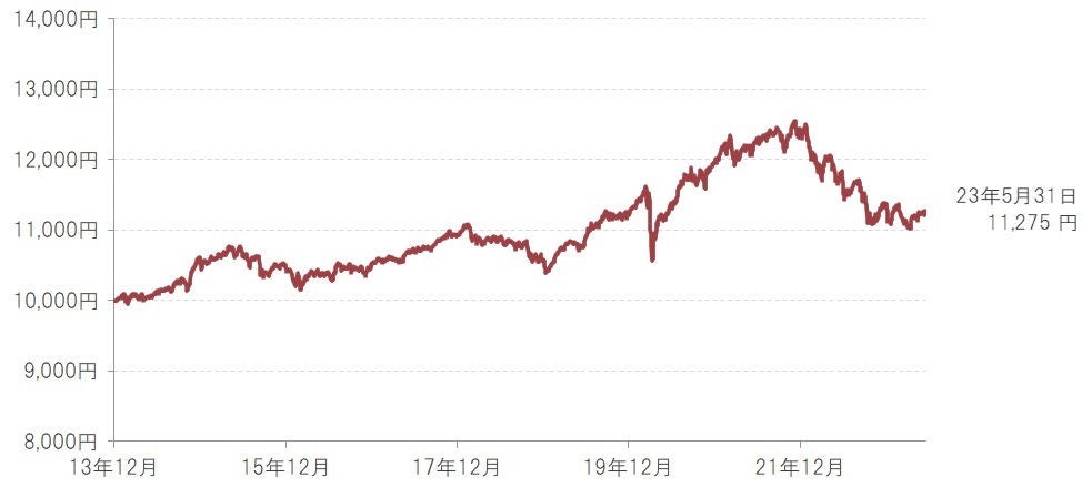 期間:設定日(2013年12月12日)~2023年5月末、単位:円