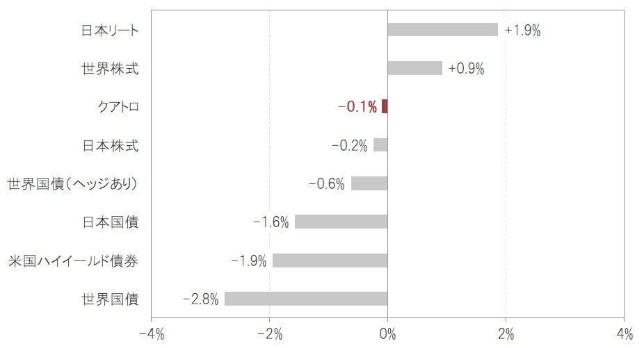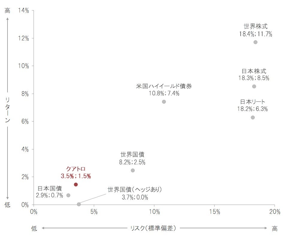クアトロの設定来の年率のリスク(標準偏差)とリターンはそれぞれ3.5%、1.5%となっています。