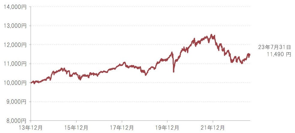 期間:設定日(2013年12月12日)~2023年7月末、単位:円