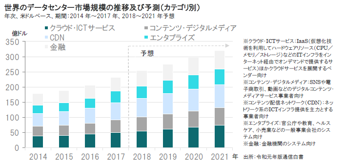 新型コロナウイルスの感染拡大の中で、人々の生活の「オンライン化」がいっそう進み、様々なデジタル・コンテンツやアプリケーションの利用が加速しています。こうしたオンライン化の流れを支える1つがデータセンター運営企業が提供するサービスです。データセンター運営企業は、顧客のサーバーなどのIT機器を設置・収容する場所を提供し、安定的にそして安全に運用できるよう、さまざまなサービスを提供する施設を運営しています。加えて、テレワークや動画配信サービスなどは「クラウド・サービス」を活用して行われていますが、データセンター運営企業はこの「クラウド・サービス」も支えています。クラウド・サービスの提供者は、膨大なデータを取り扱い、高性能のIT機器が必要となるため、データセンターを利用することがあります。また、データセンター運営企業は、各データセンター内で、顧客とクラウド・サービス提供者などを、安定的に、そして安全に接続する相互接続サービスなども提供しています。