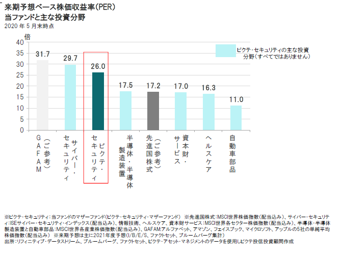また、バリュエーション(投資価値評価)水準の観点からみると、シクリカル性が高いセクターについては相対的な魅力があると考えます。一方で、サイバー・セキュリティなど相対的に高い成長が期待できるものの、バリュエーションは高水準に達しています。景気回復期待が高まり、投資家心理が好転しつつある中では相対的に低バリュエーションの銘柄にも注目が集まる可能性が高く、株価の上昇余地が相対的に大きいと考えられます。