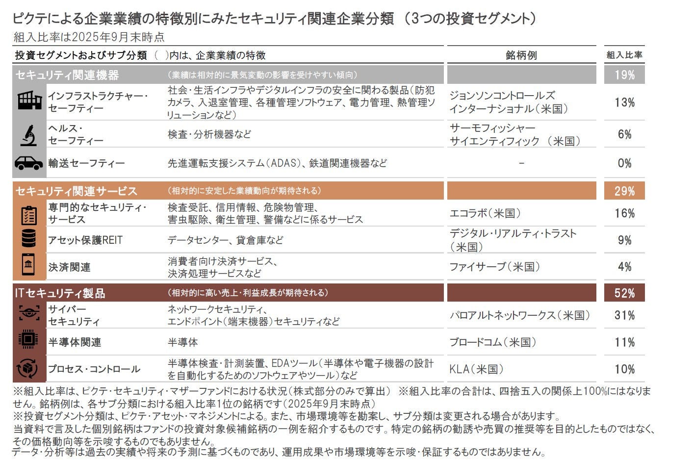 また、セキュリティ関連企業分類(3つの投資セグメント)別では、「ITセキュリティ製品」のプラス寄与が最も大きく、次いで「セキュリティ関連機器」もプラス寄与となりました。一方、「セキュリティ関連サービス」は、マイナス寄与となりました。