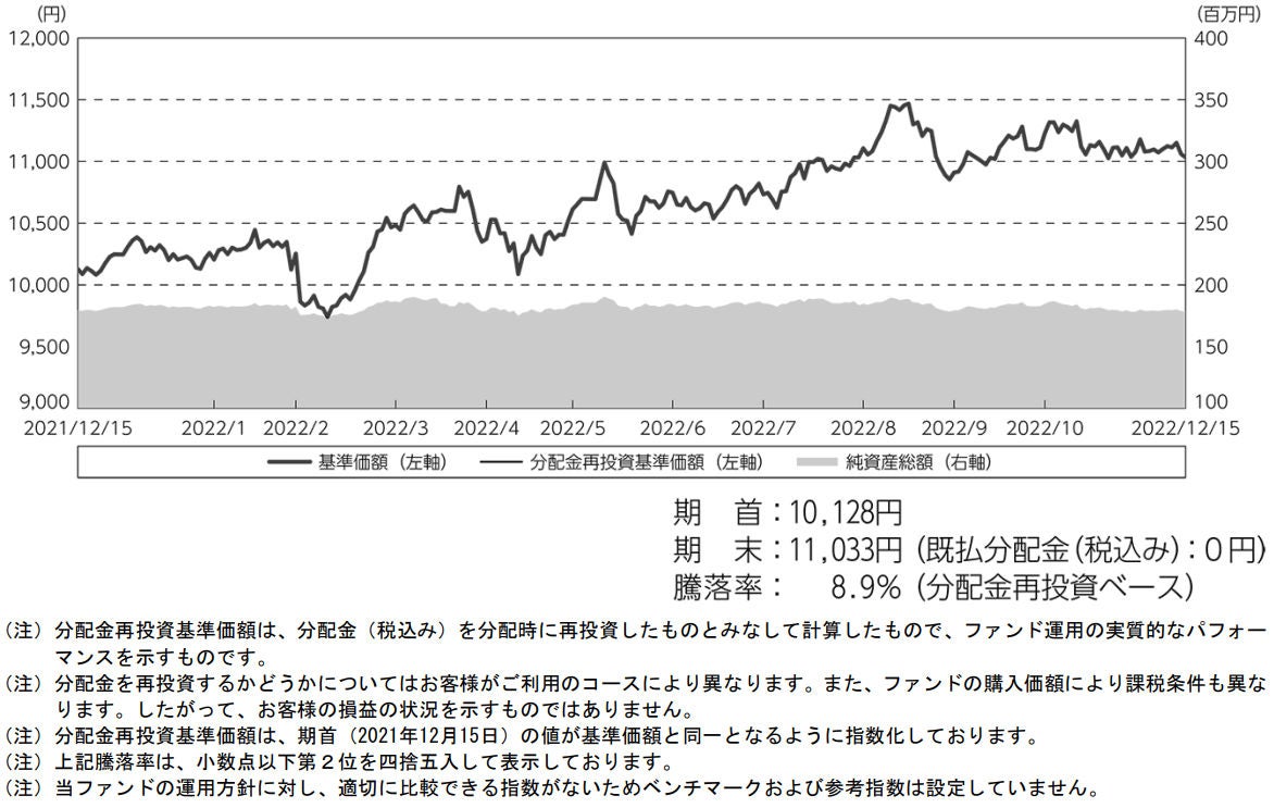 2021年12月15日~2022年12月15日の当ファンドの基準価額は、8.9%の上昇となりました。