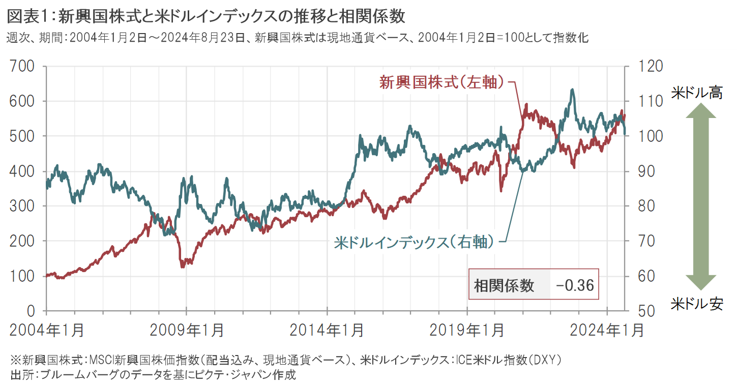 米国金利の低下と米ドル安が新興国株式にプラスに寄与すると期待される