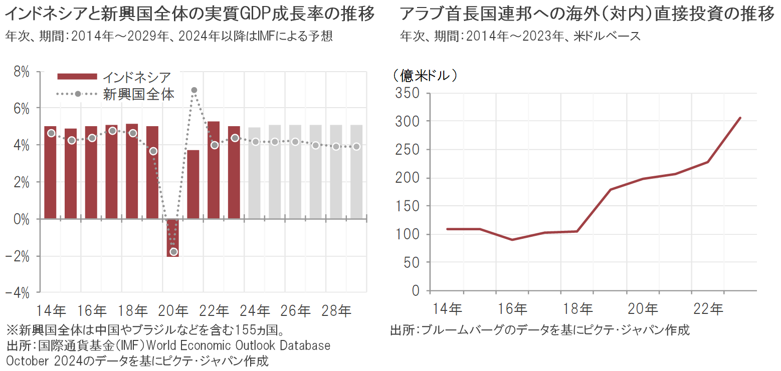 インドネシアは近年、コロナ禍の一時期を除いて概ね年5%程度の経済成長を続けており、国際通貨基金(IMF)などの推計では、2024年10月に発足したプラボウォ政権下での積極的な財政支出などを背景として、今後も同水準の成長が続くと見込まれています。