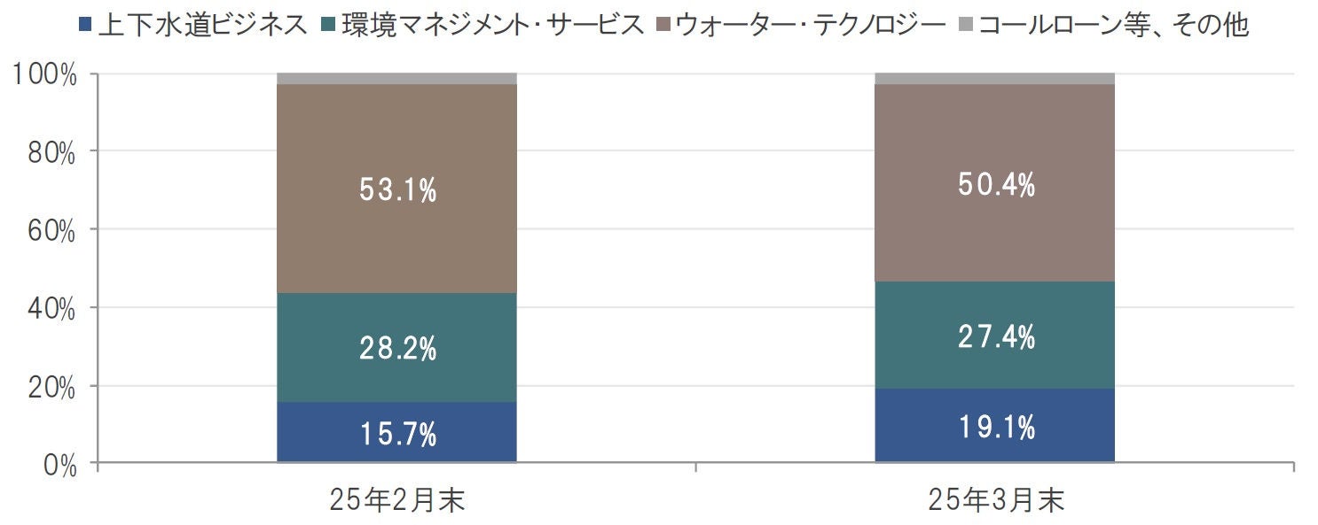 なお、2025年3月は、アメリカン・ウォーター・ワークスの株式を買い増ししたことに加え、上下水道ビジネス関連の銘柄のパフォーマンスが相対的に堅調となったことなどから、2025年3月末時点のポートフォリオに占める上下水道ビジネスの構成比は、前月末比で3.4%pt上昇し、19.1%となりました(図表4)。
