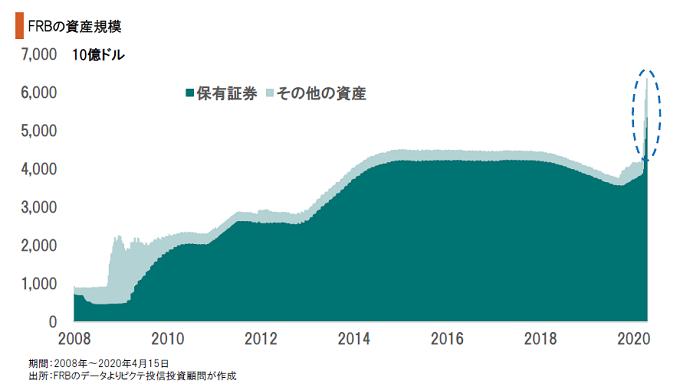 新型コロナウイルスの感染拡大、都市封鎖により、米国でも売上の急減に直面する企業は少なくない。FRBは、信用不安・社会不安を抑止するため、企業金融を軸に大量の流動性を供給、足下の市場安定に貢献している。ただし、これだけの流動性を回収するのは極めて難しいだろう。経済が正常化した時、ドルの余剰感から物価上昇圧力になるのではないか。
