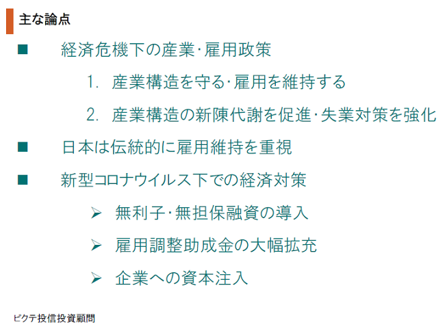 新型コロナウイルス禍下における政府の経済対策の論点の一つは、社会のセーフティネットの張り方であろう。言い換えれば、企業・産業構造を支えて雇用の維持を図るのか、産業の新陳代謝を進めつつ失業対策を強化するのか‥である。日本は伝統的に雇用維持を重視しており、それによって社会の安定を確保してきたと言える。新型コロナウイルス対策もその延長線上だ。