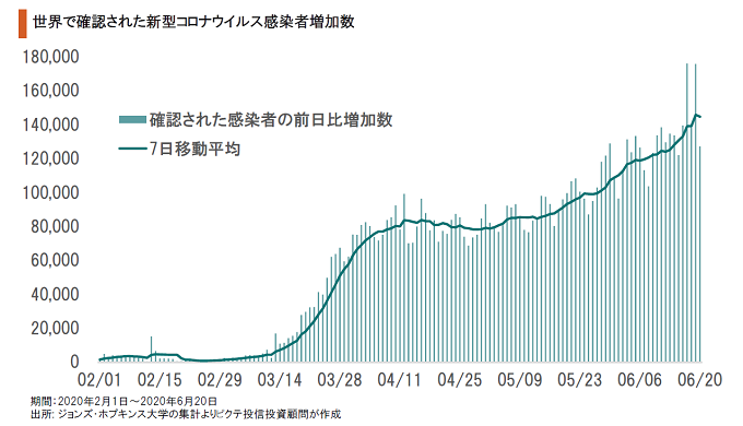 世界全体で見ると、5月中旬以降、新型コロナウイルスの新たに確認された感染数は再び増加局面をたどっている。米国国立アレルギー・感染症研究所のアンソニー・ファウチ所長は、6月17日、米国がまだ感染第1波のなかにあると指摘した。統計データを見る限り、世界も引き続き感染第1波の最中にあると考えるべきだろう。