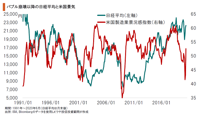 日本株は、米国景気に連動、もしくは遅行する傾向がある。それは、上場企業のうち利益水準の大きな自動車産業などが、米国市場を最大の収益源としているからだろう。足下、経済活動再開で米国の経済指標はリバウンドしている。ただし、新型コロナウイルスの感染は急速に拡大しており、先行きは不透明感が払拭できない。