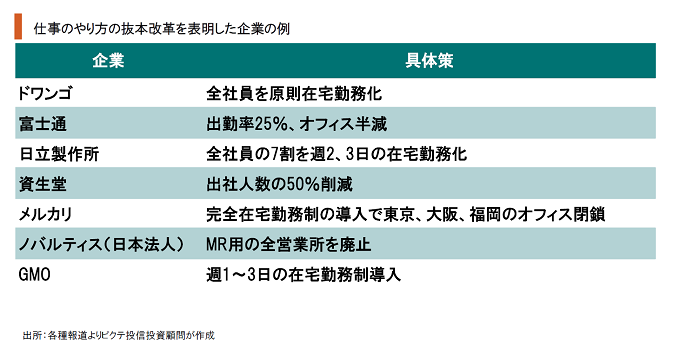 7月6日、富士通は、リモートワークを前提に社員の出勤率を25%とする結果、3年間でオフィスが半減すると発表した。日立なども同様の決定を行なっている。新型コロナウイルスは、企業に仕事の仕方の改革を迫った。これまで、人事管理や社内規定、社会的慣行から、リモートワークは進まなかった。しかし、新型コロナウイルス禍を契機に、少なくない企業が積極的に活用する方向を模索している模様だ。