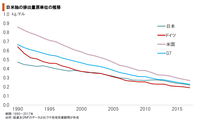 GDP1単位を生み出す毎に排出される温室効果ガスの量、即ち排出量原単位を見ると、主要先進国は趨勢的な削減を続けてきた。2050年のゼロ・エミッションを達成するには、技術革新が必要だ。特に注目されるのは、大容量・大規模バッテリー、燃料電池(水素)、SMR(小型モジュール原子炉)、ロスの少ない送電網などではないか。