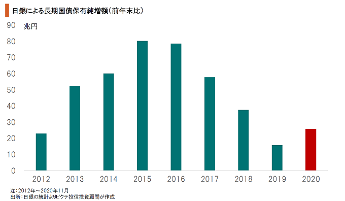 今年に入って11月末まで、日銀が保有する長期国債の純増額は25兆7,204億円だ。2015年の80兆2,577億円に比べ3分の1以下に過ぎない。もっとも、長期金利に上昇圧力が掛かれば、日銀が無制限に買い入れて金利をゼロ%近辺で安定させる・・・この前提の下で債券市場は落ち着いているのだろう。日銀が国債購入を停止すれば、その前提が崩れることになる。