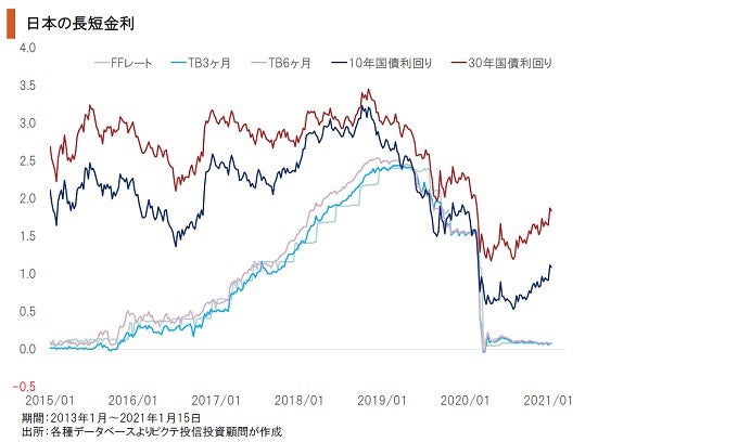 昨年12月17、18日の政策決定会合で、日銀は3月までにイールドカーブ・コントロール付き量的・質的緩和(YCC/QQE)の点検を行うと発表した。もっとも、「2%の物価目標」に変更はなく、YCC/QQEを維持することを前提としている。また、黒田東彦日銀総裁は、「オーバーシュート型コミットメント」、「マイナス金利」も維持すると明言した。もっとも、2013年4月に量的・質的緩和(QQE)を採用して以降8年近くを経ても、物価目標は達成されていない。そうしたなかで、日銀の保有する長期国債、ETFなどが肥大化し、市場における価格形成は歪められてきた。さらに、これだけ日銀の資産規模が膨らむと、出口戦略へ移行する際の市場に与える甚大なインパクトが懸念される。日銀としては、点検を通じて長期国債やETFの買い入れ額を見直す考えなのではないか。しかしながら、その後、新型コロナの感染が急拡大、政府が11都府県への緊急事態宣言を迫られたことで、状況は大きく変化した。景気や市場にインパクトをもたらす可能性のある何かを日銀が決めることはないだろう。むしろ、YCC/QQEの長期化は、将来における通貨価値下落のリスクを高め、資産市場への資金流入を後押しするのではないか。