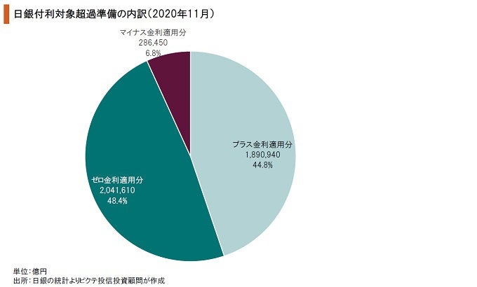 銀行による付利対象超過準備のうち、マイナス金利適用分は6.8%に過ぎない。従って、マイナス金利が銀行の収益に及ぼす影響は大きくないだろう。商業銀行の収益の源泉は預貸の利鞘だが、それは長短金利差と与信のリスクプレミアムから生じる。銀行の収益を圧迫しているのは、マイナス金利以上に貸出による利鞘が潰れていることである。