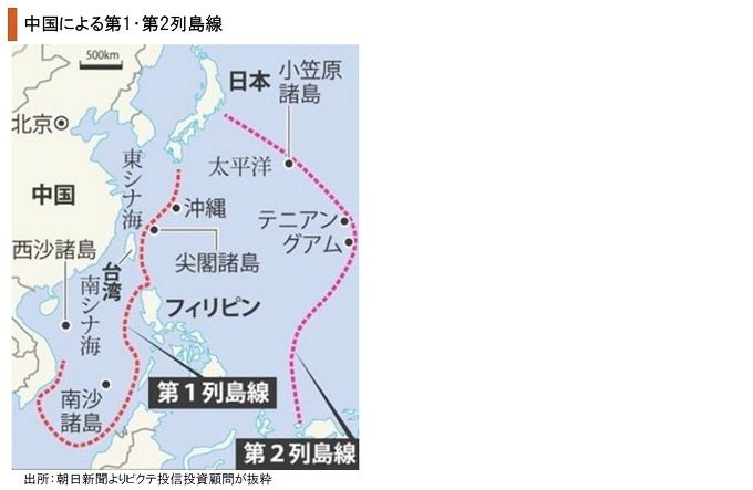 1982年、中国共産党軍事委員会主席であった鄧小平氏は、人民解放軍の劉華清海軍司令官に命じ、軍近代化計画を策定させた。そこで示されたのが第1列島線、第2列島線の概念だ。過去40年間、中国はこの計画に沿って海空軍力を整備してきたと言える。この海域は日本の領土・領海を広く含む上、エネルギーなど資源輸入における重要なシーレーンだ。