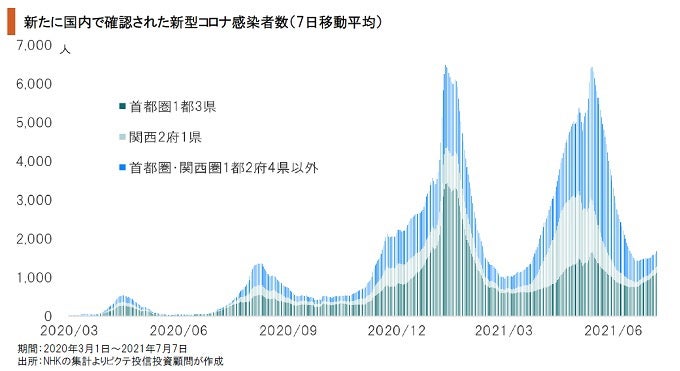 菅政権は、7月11日を期限として東京都に発令されていたまん延防止措置を緊急事態宣言に切り替えた。新たな感染者が増加傾向にあるなか、東京都の要請などを踏まえた措置だ。これで東京都の緊急事態は4回目であり、7月23日開幕の東京五輪は1都3県の会場で無観客が決まった。小売、飲食、観光業などへの打撃は避けられず、景気への影響が懸念される。