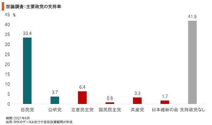 菅首相、そして与党にとっての好材料は、野党への有権者の期待が高まっていないことだろう。政権が交代した2009年は、8月30日に行われた総選挙の数ヶ月前には、自民党と野党第1党であった民主党の支持率が逆転していた。しかしながら、現在、野党第1党の民主党の支持率は6~8%程度であり、自民党、公明党の連立政権を脅かす水準には達していない。