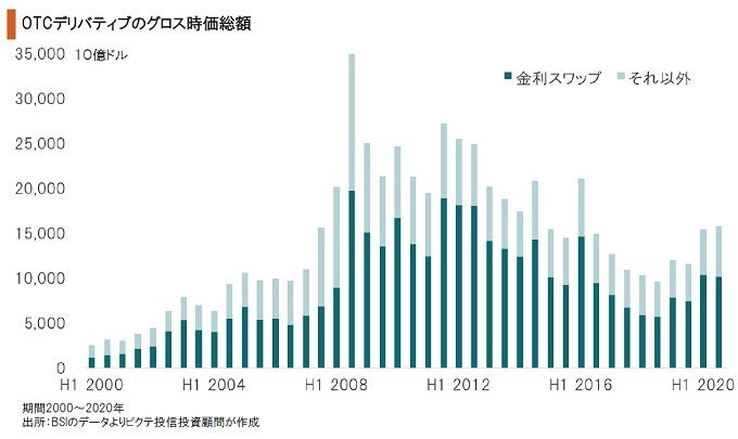 恒大問題に関し、リーマンショックとの類似性を指摘する声もある。しかし、恒大の苦境は、デリバティブによるレバレッジが最終損失の確定を遅らせた住宅バブル崩壊とは本質的に異なるだろう。ちなみに、2008年6月時点でOTCデリバティブのグロス時価総額は34兆9,410憶ドル、世界の名目GDPの55%に達していた。昨年末は19%であり、極端な状態にはなっていない。