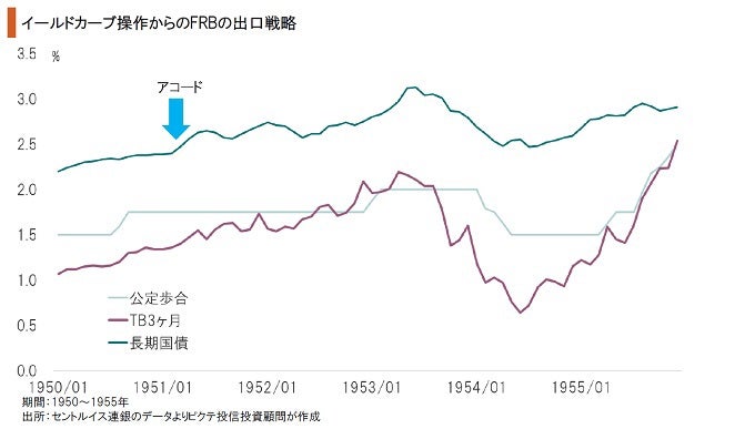 主要中央銀行が長期金利をコントロールした例は、1942~51年、第2次大戦と終戦直後の米国においてFRBの例がある。1951年3月、米国財務省との「アコード}により、FRBはこの戦時体制からの出口戦略に転じた。非市場性国債の発行などで当局が難易度の高いオペレーションを成功させた背景には、長短金利差と米国の高い経済成長率があったのではないか。