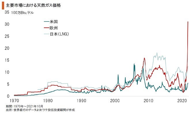 地球温暖化抑止は喫緊の課題であり、化石燃料の使用は段階的に縮小するだろう。もっとも、直ぐに大きく減らせるわけではない。一方、生産国・企業は需要の先細りを見越して投資を抑制することが予想される。結果として、需給関係が引き締まり、天然ガス、石炭などの価格が急騰した。化石燃料は「売り手市場」になり、価格は高水準で高止まりする可能性がある。