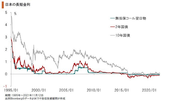 米国では消費者物価上昇率が30年ぶりの水準に達するなど、世界的にインフレの可能性が指摘されるようになった。物価上昇の理由は、1)グローバリゼーションから分断の時代への変化、2)温室効果ガス削減努力による化石燃料価格の高騰、3)中国の「共同富裕」政策がもたらす資源需要の急速な拡大、そして4)リーマンショック、新型コロナ禍の下での「財政・金融双子の肥満」・・・以上4つに集約できるのではないか。つまり、ブレはあっても物価上昇圧力は一過性ではなく、世界はインフレへ向かいつつある可能性が強まったと考えるべきだろう。米国主導によるグローバリゼーションの時代になった1991年以降の30年間、日本はデフレに陥った。サプライチェーンの国際的な統合が進むなか、人件費の安い中国やASEAN諸国などに「世界の工場」の座を奪われた上、構造改革を怠ってきたことが背景と考えられる。仮に資源価格の上昇など外的な要因でインフレ圧力が強まる場合、日銀の出口戦略は極めて難易度の高いものとなるだろう。イールドカーブがフラット化した状態で、10年国債利回りのターゲットを引き上げれば、国債に対して強力な売り圧力が生じる可能性は否定できない。