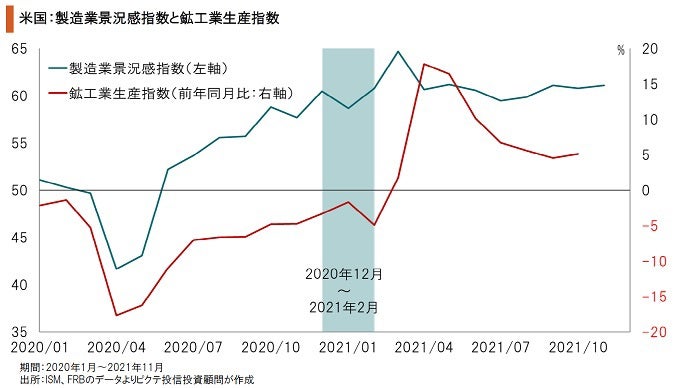 経済面に目を転じると、新型コロナが米国景気に強いダメージを与えたのは昨年3~5月だった。新たな感染症への対応策がなく、恐怖感が広がるなかで生産は失速した。一方、感染第3波の局面では、生産が底入れするなど経済活動は制約の下で徐々に活発化している。新型コロナの影響は、飲食、観光、運輸など一部の産業に集中することが明らかになった。