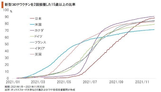ドナルド・トランプ前大統領による「ワープスピード計画」で、ファイザー、モデルナ、そして英国のアストラゼネカが相次いで新型コロナ向けワクチンを開発した。ジョー・バイデン現大統領は、就任直後からこのワクチン接種の拡大に注力している。接種率が60%程度に達して以降、減速してはいるものの、当初、米国は主要国のなかでワクチン接種に先行したと言えるだろう。