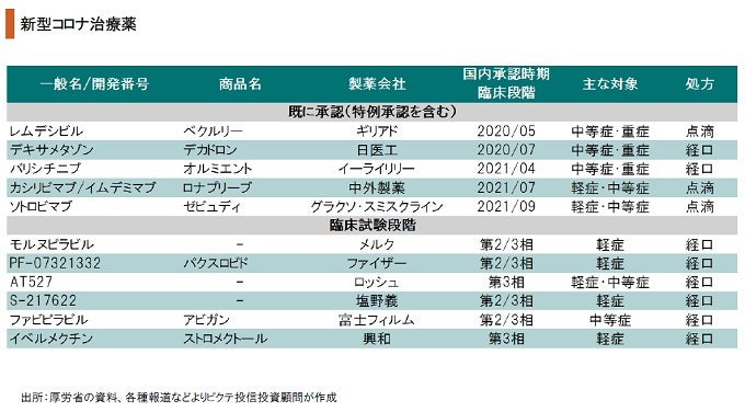 ワクチンと共に新型コロナ禍を克服する上で重要なのは治療薬の開発だ。メルクのモラヌピラビル、ファイザーのパクスロビドなどが治験の最終段階に入った。オミクロン型の性質はまだ解明段階のため、これらの治療薬の効果は不明だ。ただし、軽症・中等症者向けの経口治療薬が機能すれば、在宅での感染者の療養が可能になり、新型コロナの収束へ大きく前進する。