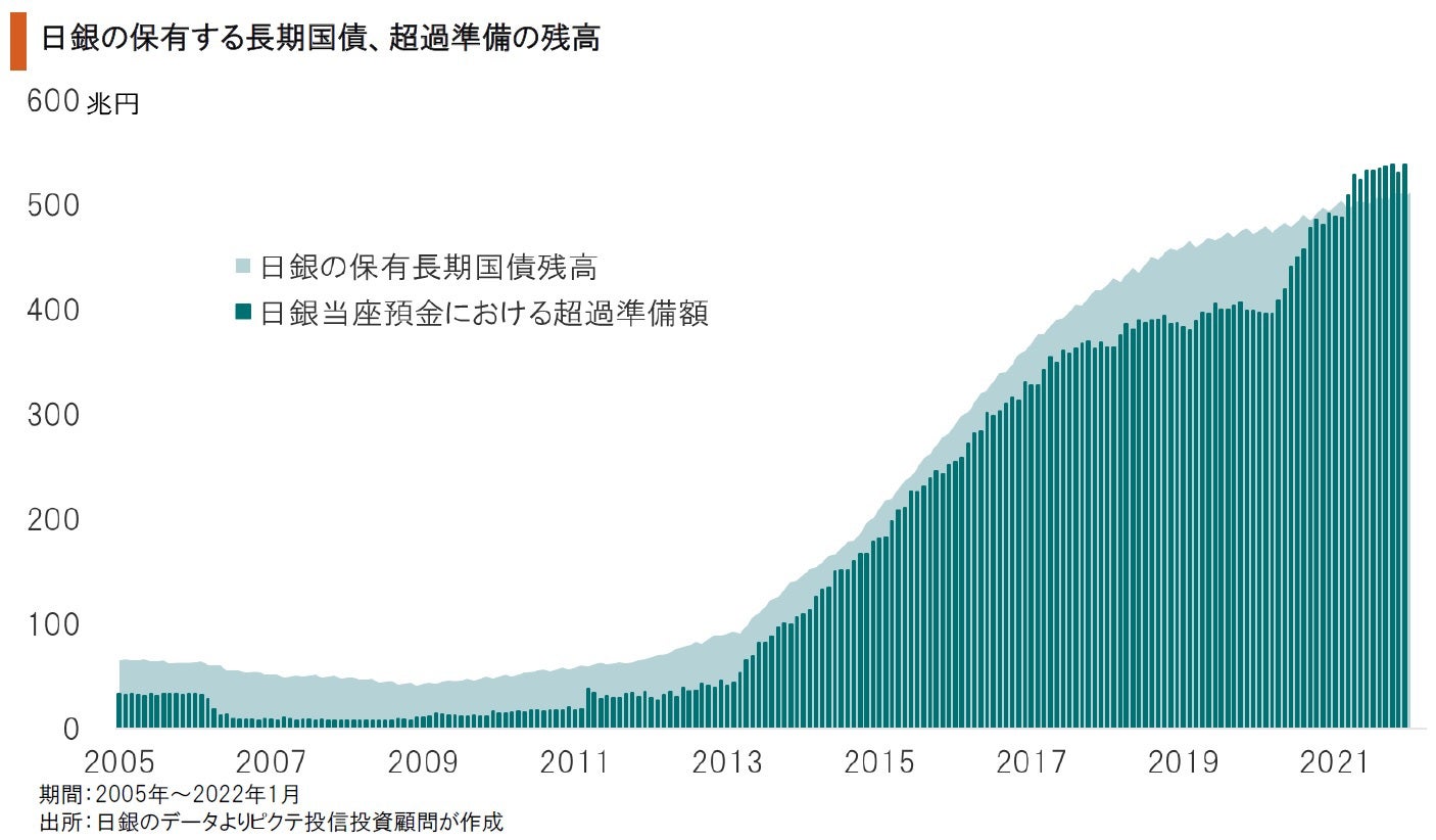 イールドカーブコントロールを採用している以上、ターゲットレンジの引き上げで10年国債に売り圧力が生じれば、日銀はこれを買い支えざるを得ない。保有国債は日銀の資産に計上されるため、バランスシートの性質上、日銀の負債も膨らむことになる。具体的には、当座預金の超過準備が拡大することにより、借方(左側)と貸方(右側)がバランスすることになるだろう。