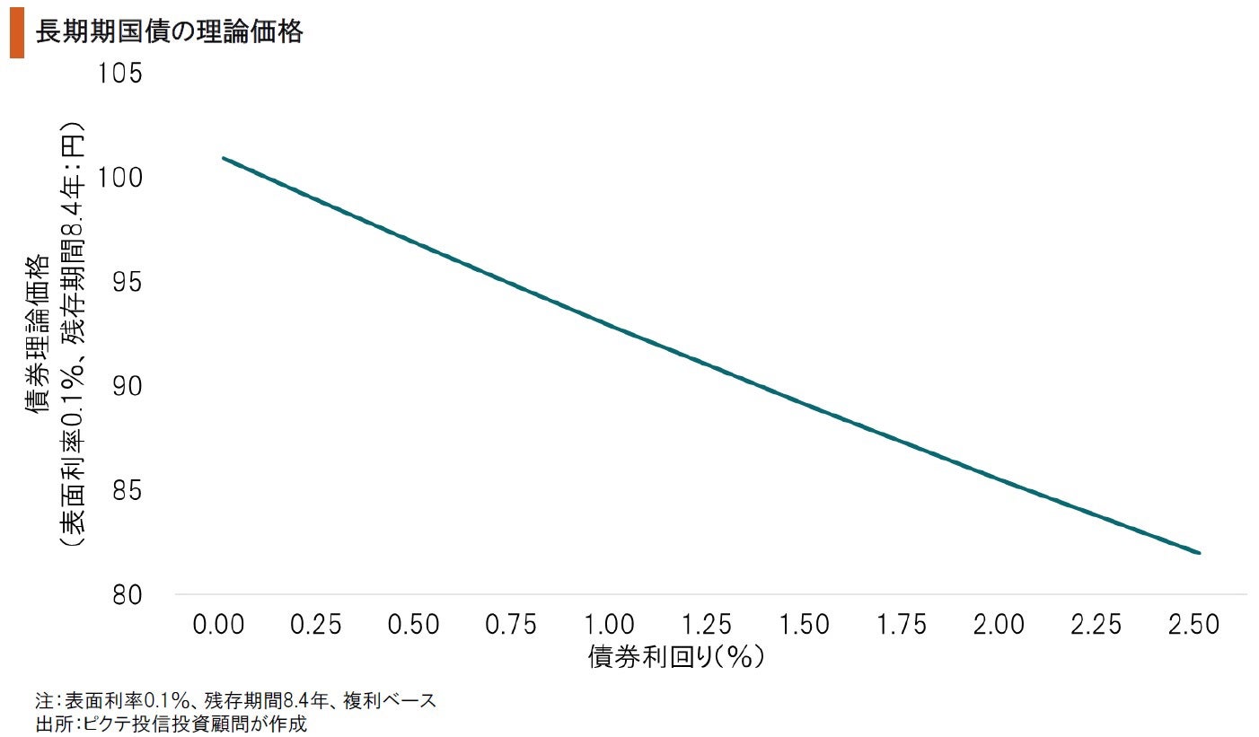 額面100円、表面利率0.1%、償還までの期間を長期国債の平均デュレーションである8.4年とした場合、利回りが0.0%から0.5%に上昇すると、債券の理論価格は複利ベースで4.1%下落する。仮に日銀が10年国債利回りのターゲットを「0.5%±25bp」とした場合、さらなるレンジの切り上げを織り込み、長期国債の売り圧力は急速に強まるのではないか。