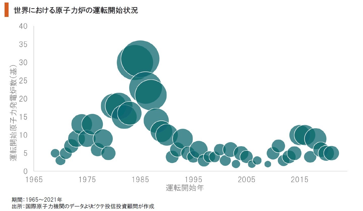 1970年代の第1次、第2次石油危機は、主要国に石油代替エネルギーの開発を迫り、結果として1980年代には世界全体で197基の発電用原子炉が稼働した。これは、1970年以降に建設された原子炉432基の45.6%に相当する。既にEUは「タクソノミー」に原子力を加える検討に入り、フランスのエンマニュエル・マクロン大統領は原子力発電所の建設再開を発表した。