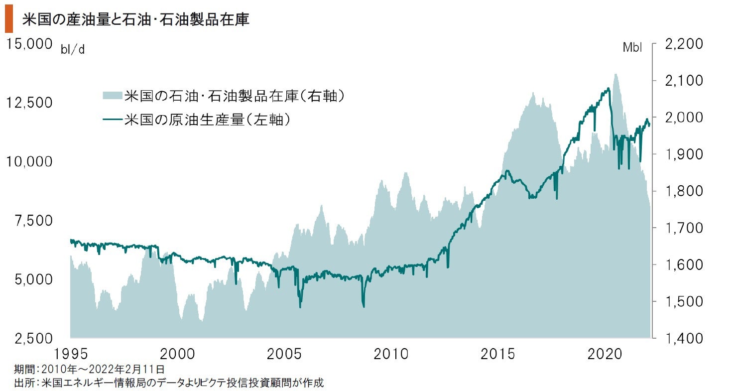米国エネルギー情報局(EIA)によると、今年に入って同国の石油生産量は日量平均1,162万blであり、2020年8月の1,048万blからやや回復した。ただし、過去最大だった2020年2月の1,303万blには届いていない。環境問題を重視するジョー・バイデン大統領がシェール開発を規制してきたことが背景だ。ウクライナ危機でその方針は見直される可能性が強い。