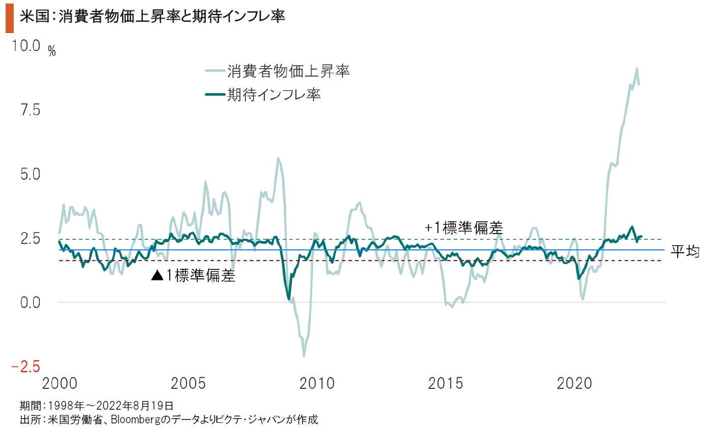 米国市場では、成長株が6月中旬を底値に反発し、マーケット全体をアウトパフォームしている。しかし、その持続力には疑問が強い。理由は、経済のファンダメンタルズが大きく変化したと考えられることだ。1991年12月の旧ソ連崩壊以降、米国主導のグローバリゼーションの下、主要国の物価は米国を含め安定した。その結果、約30年間に亘り金利が趨勢的に下落したことで、リスク許容度が高まり、成長企業へ潤沢な資金が供給されたのではないか。さらに、新型コロナ禍の下での歴史的な金融緩和と経済・社会のリモート化への期待が、成長株主導の力強い株価上昇の背景だった。もっとも、ロシアによるウクライナ侵攻に象徴されるように、世界は新たな分断の時代に入ったようだ。世界的にサプライチェーンが寸断され、調達コストは趨勢的な上昇が予想される。また、米国は労働力不足に直面、賃上げ率が高止まりする可能性が強い。もっとも、マーケットは現下の物価上昇を一時的な現象と見ているようだ、市場が織り込む期待インフレ率は高まっていない。マーケットがインフレの長期化を織り込む時、イールドカーブが右肩上がりの角度を上げ、株式市場ではバリューが強く意識されるのではないか。