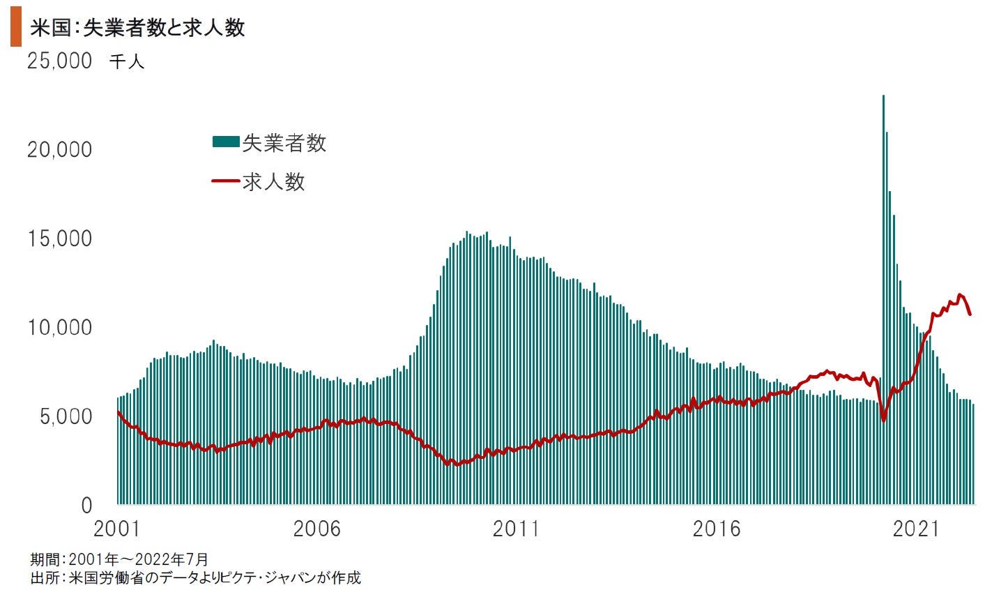 米国においては、12ヶ月連続で求人数が1千万人を超え、求職者とのギャップが総労働力人口の3%程度に達している。これは、移民の流入が滞っていること、新型コロナ禍で離職した高齢層が労働市場に戻っていないことが背景だろう。労働者の流動化が進むなかで、事業主は雇用の確保に苦労しており、賃金上昇率の高止まりは避けられそうにない。