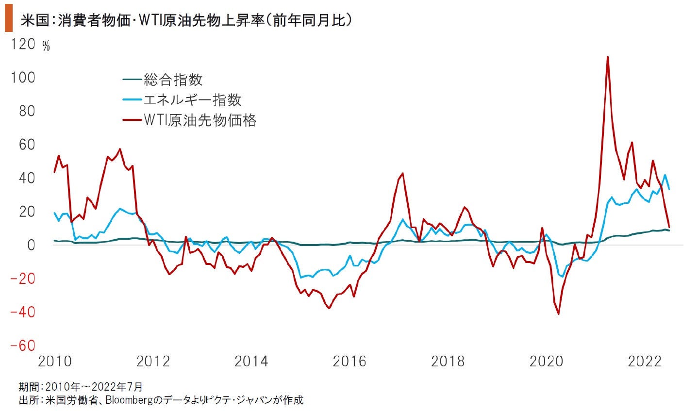 昨年以降の米国における物価上昇は、新型コロナ禍によるサプライチェーンの目詰まりに加え、エネルギーなど資源価格の上昇を背景としていた。ロシアによるウクライナ侵攻を受け、原油価格は高止まりしているものの、今年末にはエネルギーが物価に与える影響はニュートラルになる可能性が強い。その場合、消費者物価上昇率は前年同月比4~5%程度になろう。