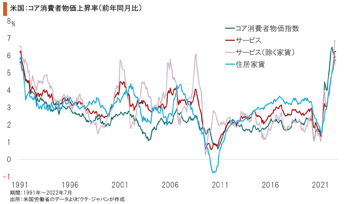 中長期的に考えると、エネルギーの影響力が低下しても、米国の消費者物価上昇率は高止まりするのではないか。背景には構造的な労働力不足による強い賃金上昇圧力がある。これまでは新興国からの輸入が物価安定の調整弁だったが、国際社会の分断により過去30年間とは異なるシナリオを想定しなければならない。物価安定の時代は終わったのではないか。